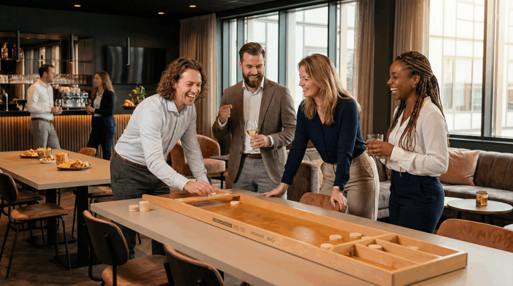 Of je nu zoekt naar een robuuste tafeltennistafel, een strakke pooltafel of een gepersonaliseerde sjoelbak: bij ons vind je vakmanschap dat tegen een stootje kan. Wij snappen dat zakelijke klanten zoeken naar zekerheid.