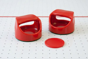 De airhockey pushers zijn uitgevoerd in een stoere rode kleur en worden geleverd in een set van 2 stuks.