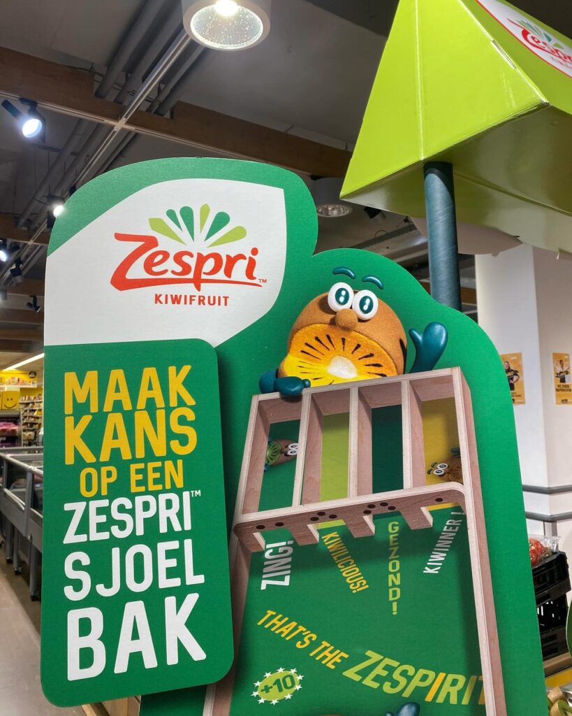 Brand Fit: De sjoelbak werd hier gepositioneerd als de ideale prijs die past bij de vitale waarden van zowel de supermarkt als Zespri.