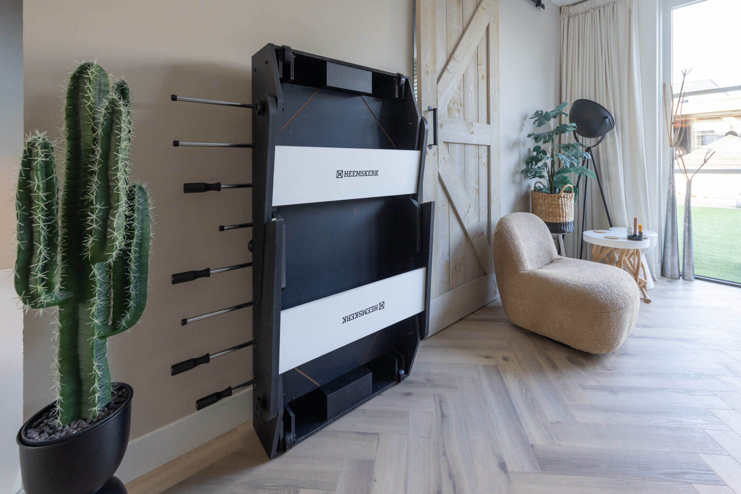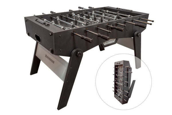 De Knight Foldable combineert plezier met gemak. Het handige inklapbare onderstel zorgt ervoor dat je de tafel eenvoudig kunt opbergen na gebruik. Ideaal voor kleine ruimtes of als je flexibiliteit wilt zonder aan plezier in te boeten. Een perfecte voetbaltafel die je in een handomdraai inklapbaar maakt voor maximale ruimtebesparing.