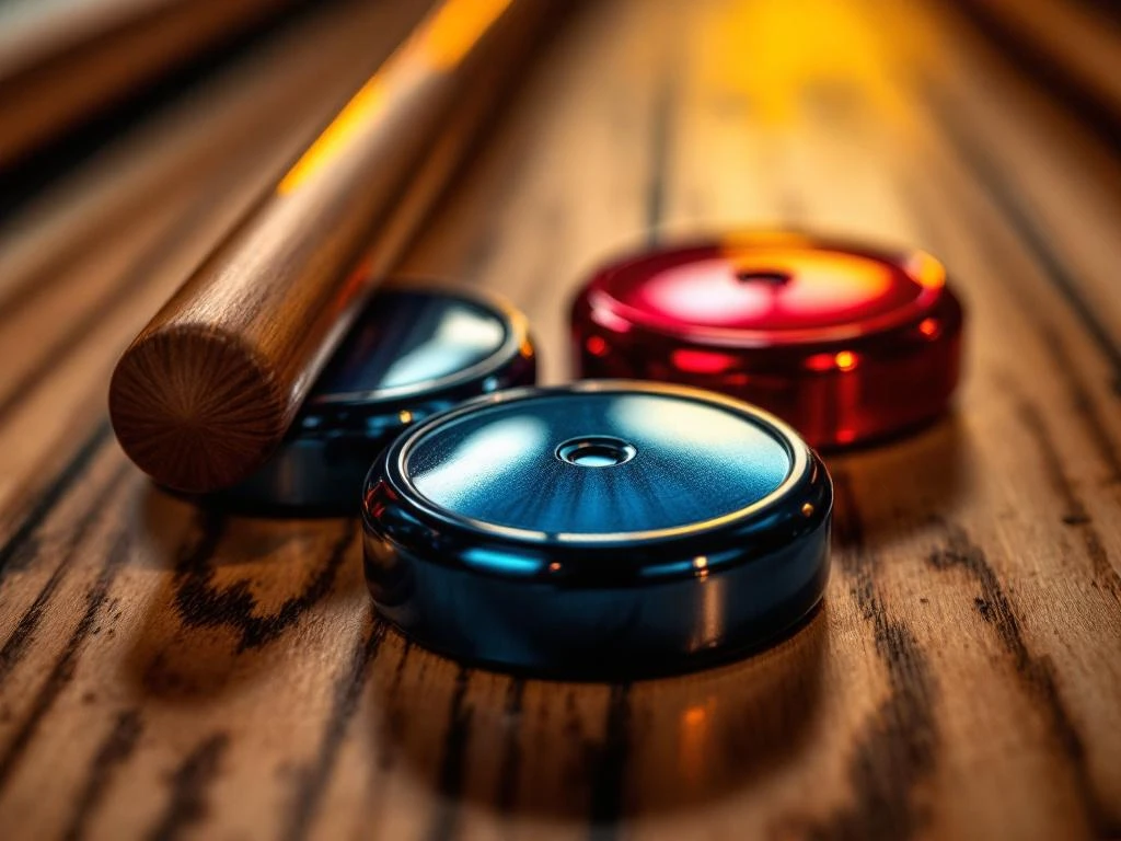 Shuffleboard scoren werkt met een puntensysteem waarbij je schijven schuift naar verschillende zones op het speelveld. Elk gebied heeft een eigen puntwaarde, en alleen schijven die volledig in een zone liggen, tellen mee. Je speelt meestal tot 15 punten (twee spelers) of 21 punten (teams), waarbij je tegenstanders kunt blokkeren of wegstoten voor strategisch voordeel.