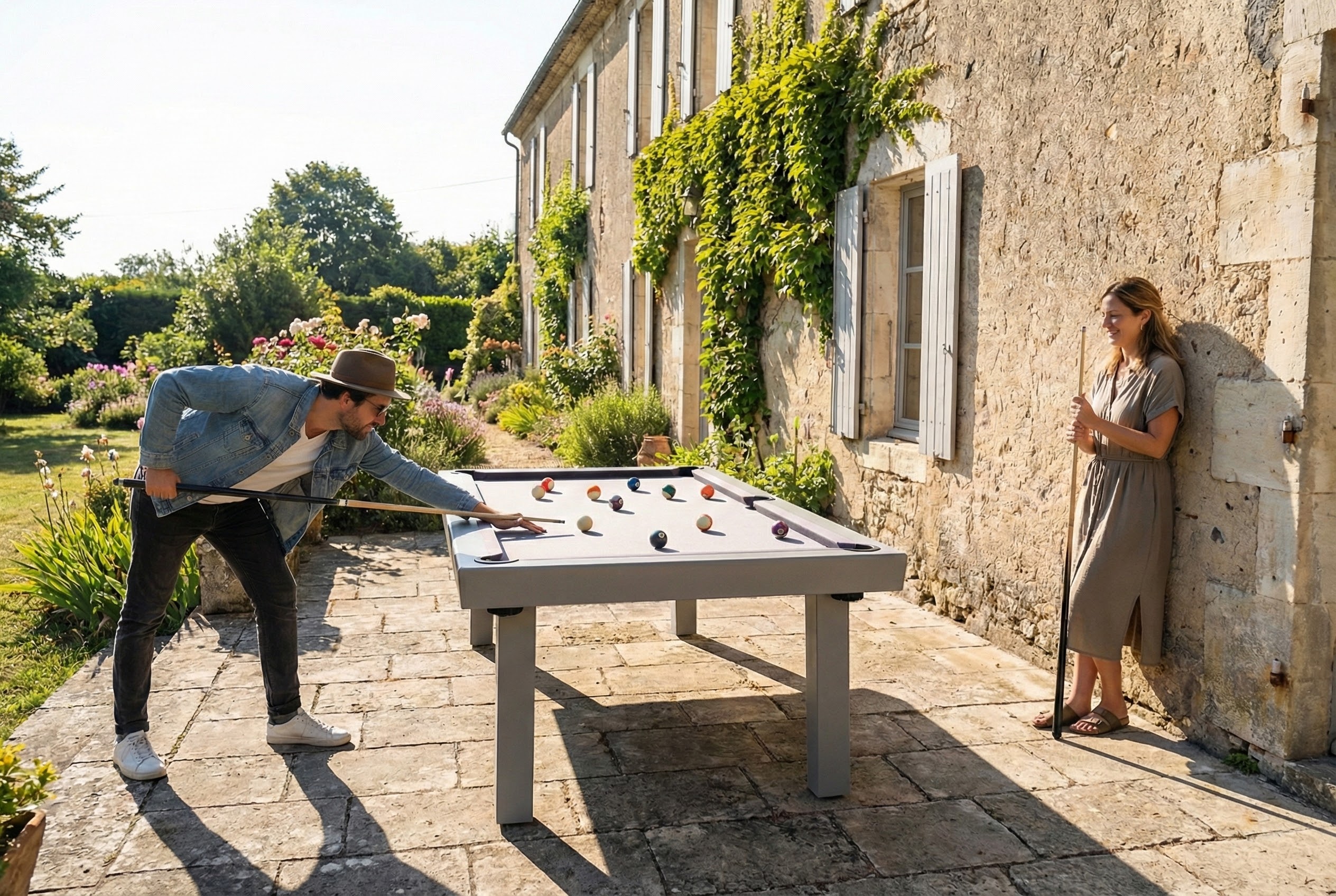 Het laken van de outdoor pooltafel is in de fabriek reeds op het 1-delige leistenen speelveld aangebracht. Een combinatie van wol en acrylvezel, voorzien van een teflon finish zorgt voor een laken in wedstrijdkwaliteit.
