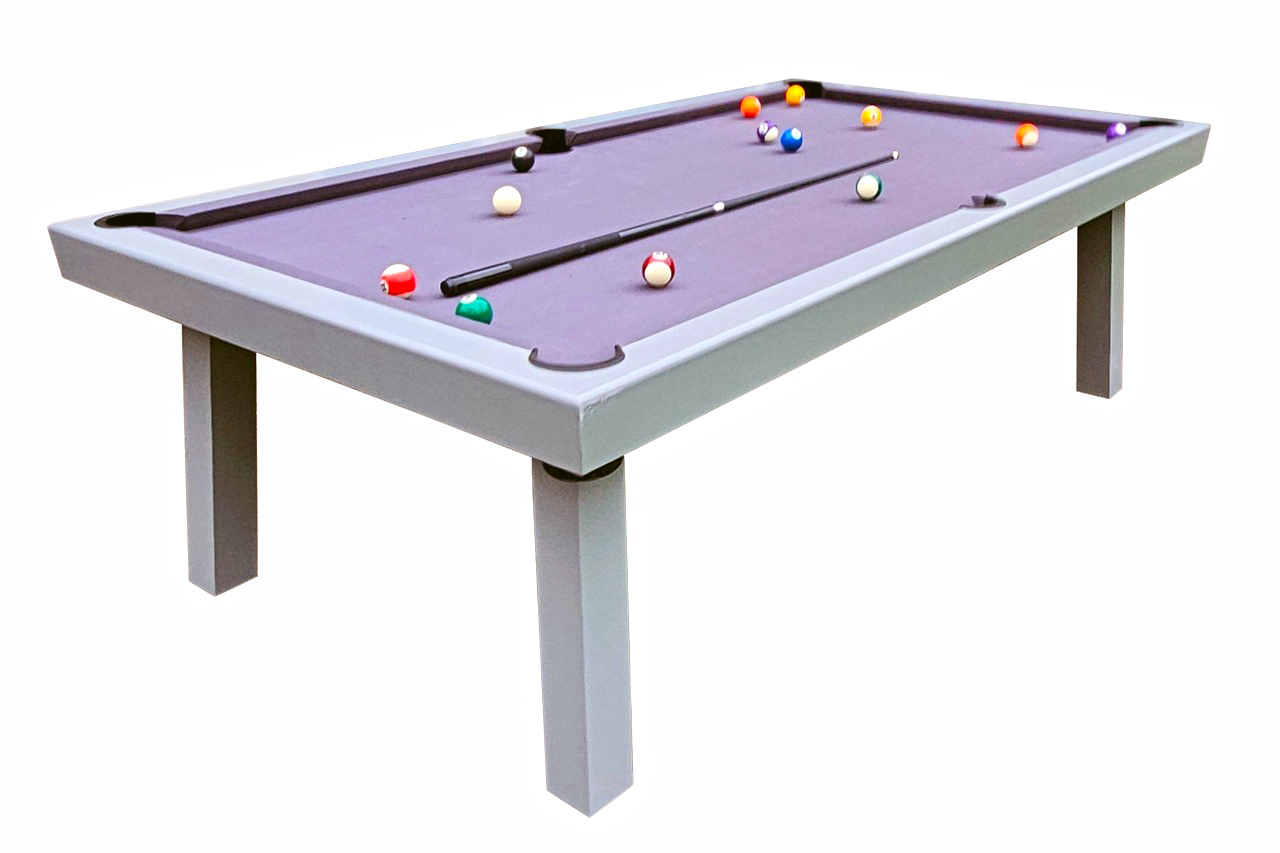 Professionele pooltafel met leisteen en waterafstotend snel laken. De contructie is van aluminium, afgewerkt met een poedercoating.