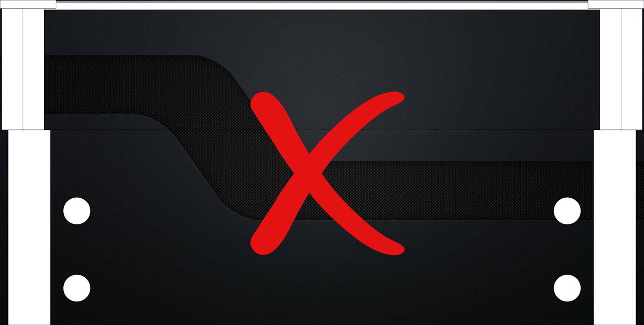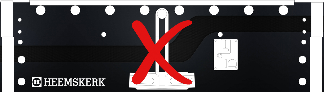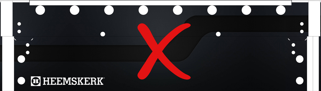 Zorg ervoor dat technische elementen zoals uitsparingen (voor o.a. de stangen, balteruggave en schroeven) niet zichtbaar zijn in je designlaag. Deze elementen zijn al opgenomen in de onderliggende technische laag van onze template.