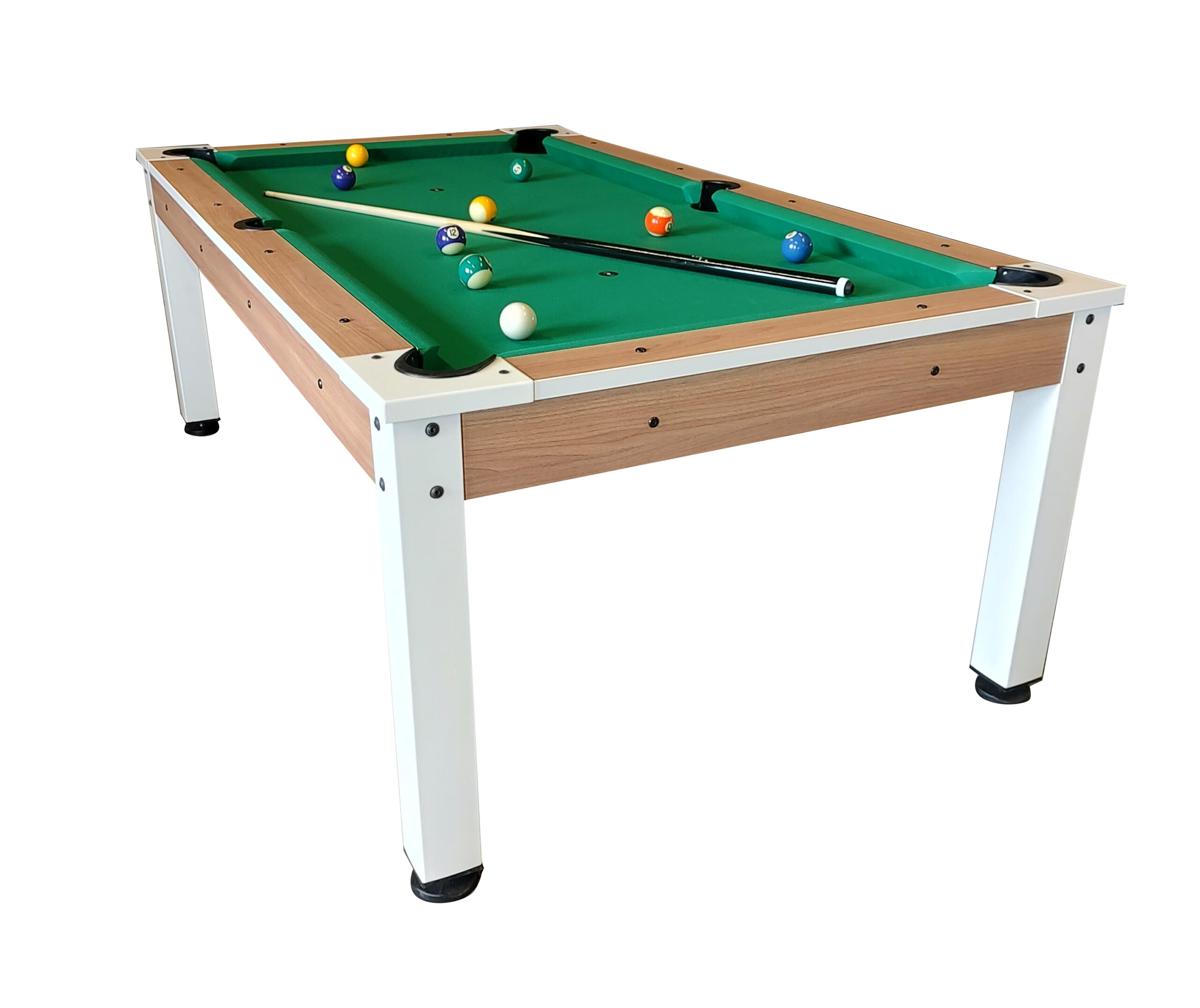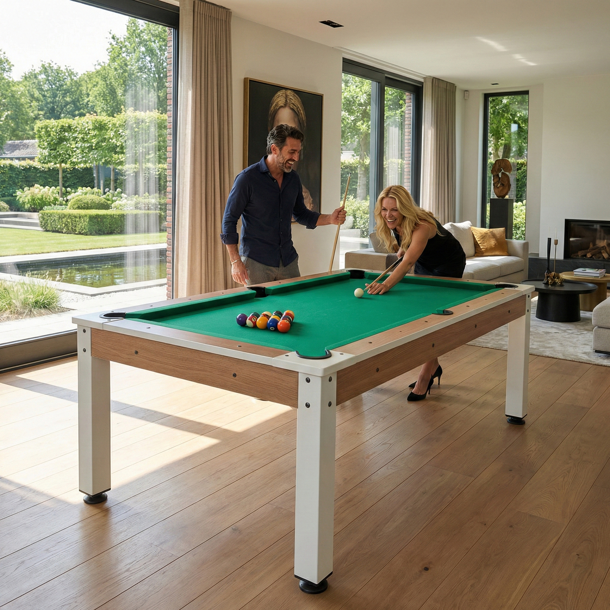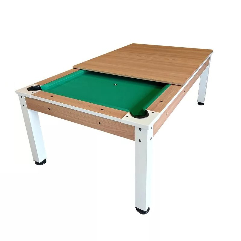 Deze tafel is een meester in transformatie. Het ene moment vergader je aan een ruimtelijke design-tafel met een warme hout-look, het volgende moment speel je een fanatieke pot pool op professioneel niveau. Een pooltafel annex eettafel die gezien mag worden.