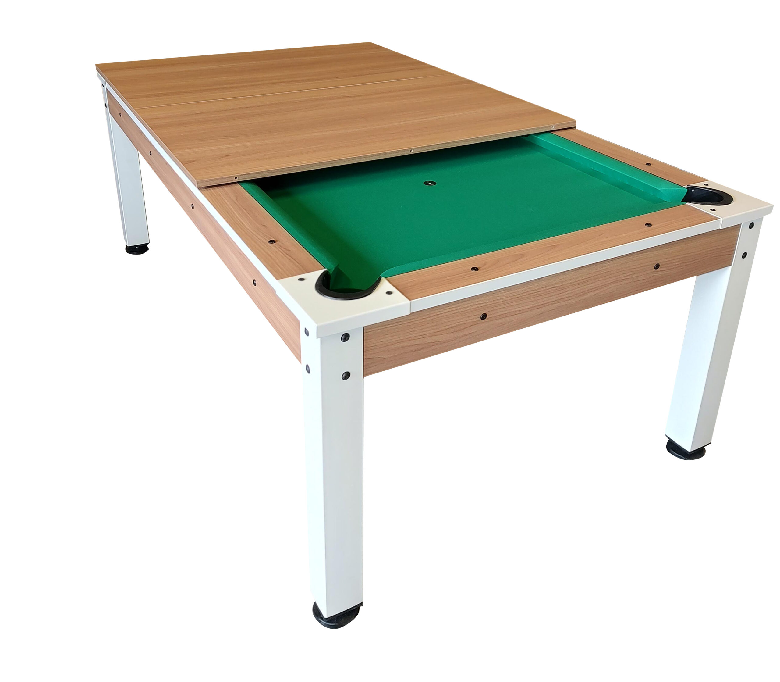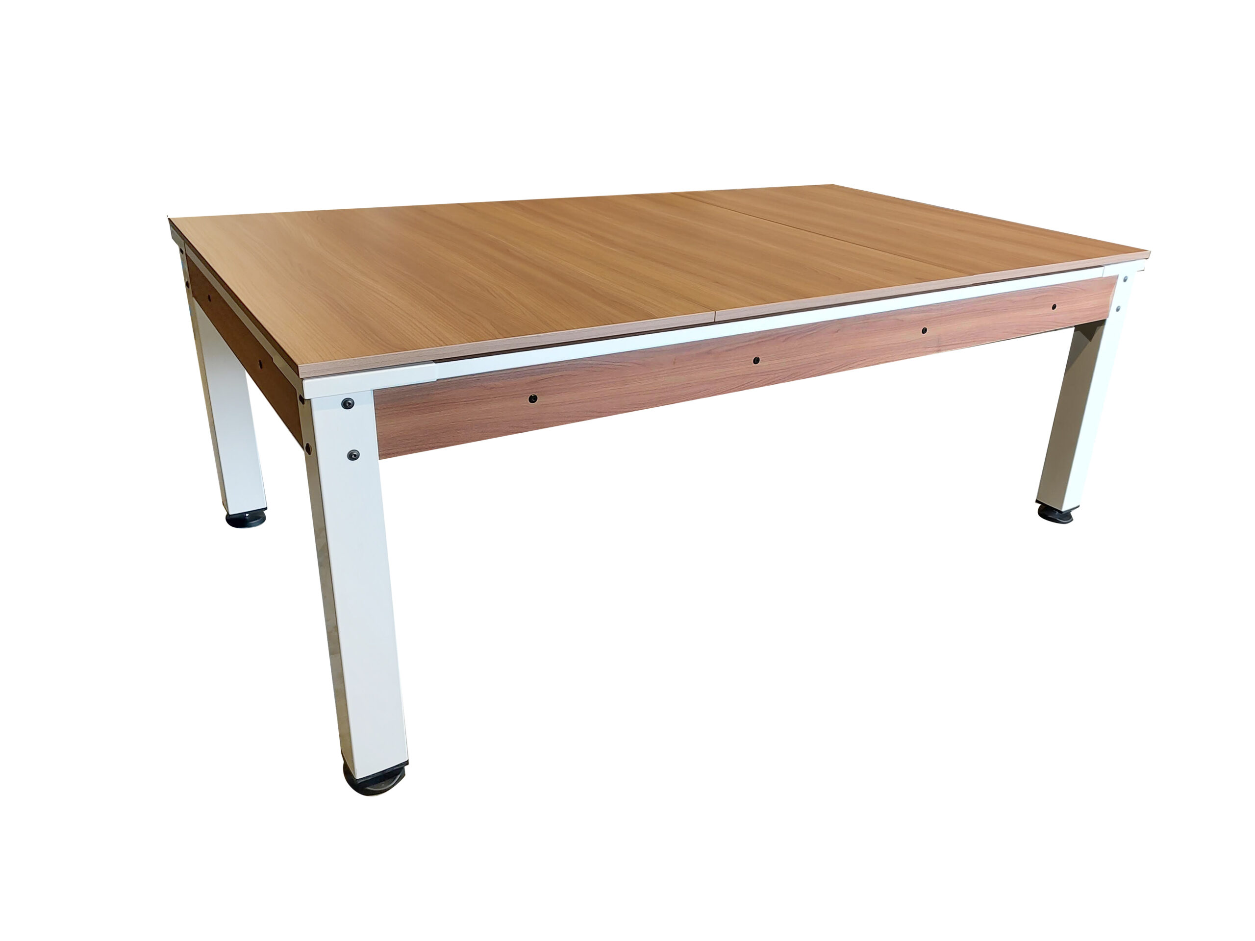 Waarom kiezen als je alles kunt hebben? Door de bijpassende 3-delige walnoot afdekplaten te plaatsen, tover je het speelveld om tot een egaal tafelblad. Ideaal als lunchtafel, bureau of vergaderplek. Ruimtebesparend en functioneel, zonder dat je inlevert op stijl.