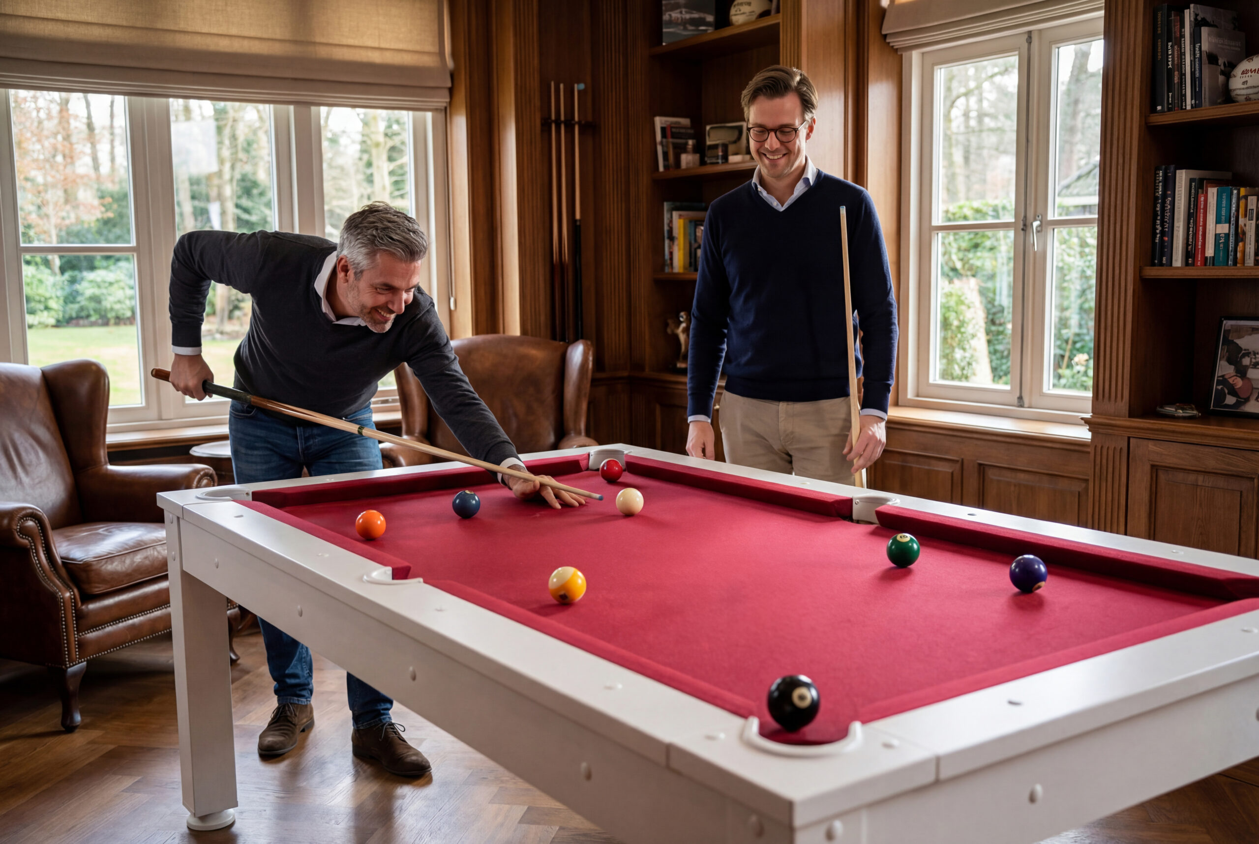 Heemskerk Richmond White: De frisse blikvanger voor jouw Business & Leisure ruimte. Vergeet de traditionele, donkere biljartzaal; de Richmond White brengt licht, ruimte en energie in jouw kantoor of hotellobby. In nauwe samenwerking met onze Italiaanse designers is een tafel ontwikkeld die breekt met conventies. Het is een toonbeeld van “clean design” zonder in te leveren op professionele speeleigenschappen. Dit is de ideale fusiontafel voor ondernemers die houden van een open en transparante sfeer.