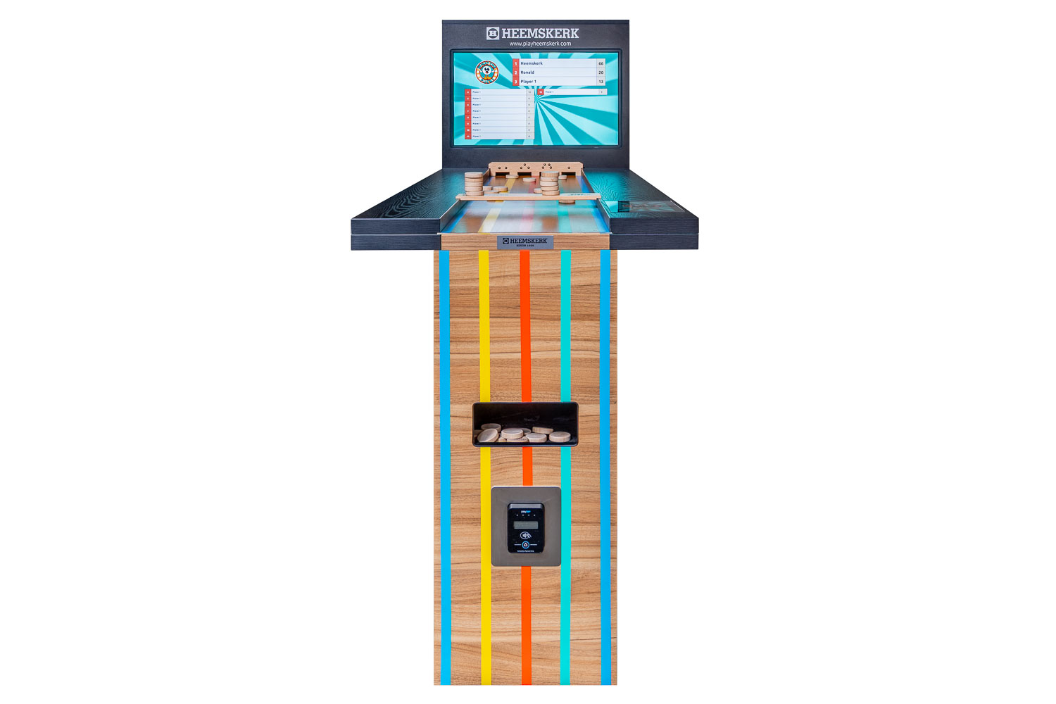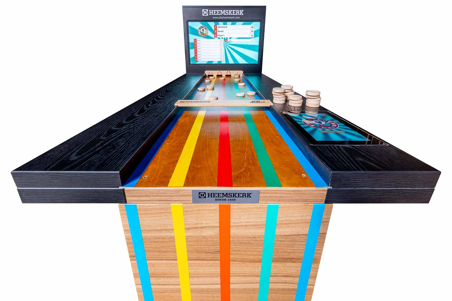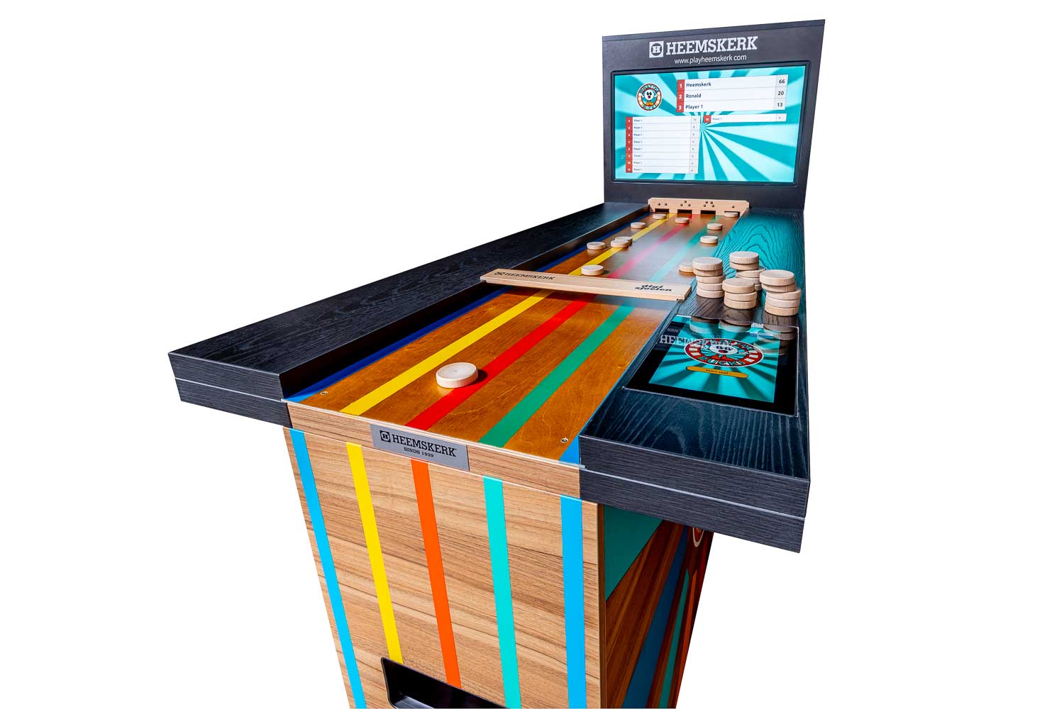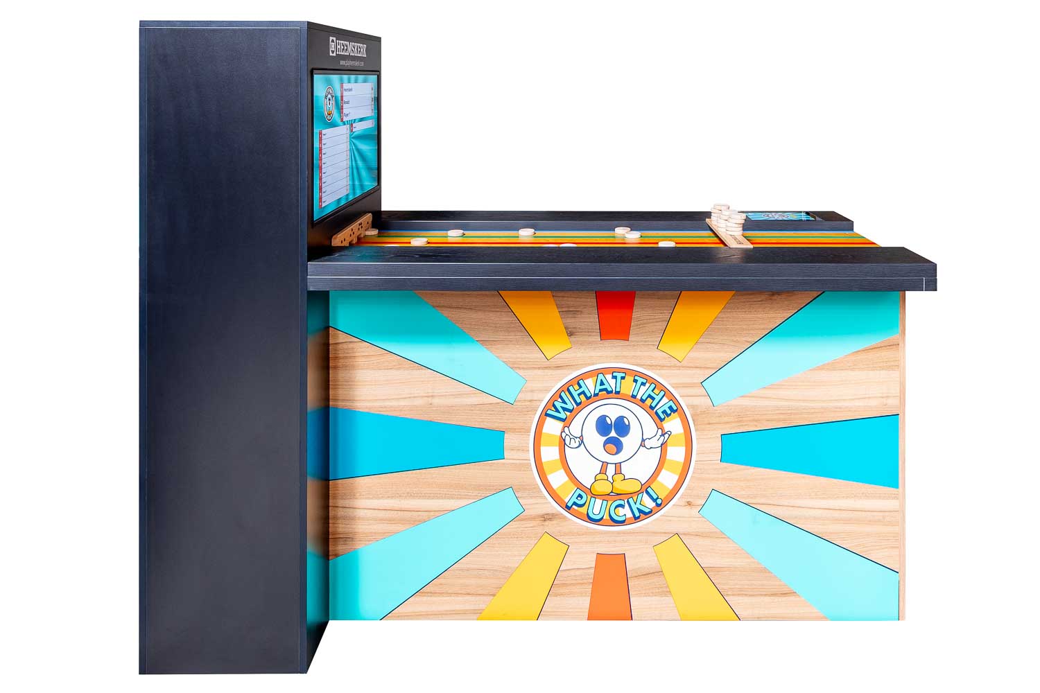 Samen met Leisure Office heeft Heemskerk de sjoel bartafel What The Puck ontwikkeld. Het oer-Hollandse sjoelen is hiermee naar een compleet nieuw niveau getild. Dit is sjoelen 2.0: geen gedoe meer met puntentelling, dat gaat volledig automatisch. Gescoorde schijven komen vanzelf terug. Ideaal toch? Dit zou zomaar dé nieuwe hit in de horeca kunnen worden. What The Puck is klaar voor kroegen, speelruimtes en evenementen. Deze digitale sjoelbak is dus breed inzetbaar.