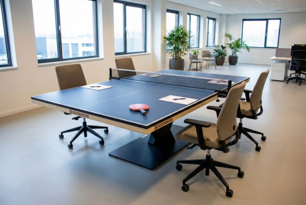 De vergadertafeltennistafel wordt met een professioneel tafeltennisblad geleverd.