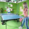 Deze tafeltennistafel is makkelijk inklapbaar.