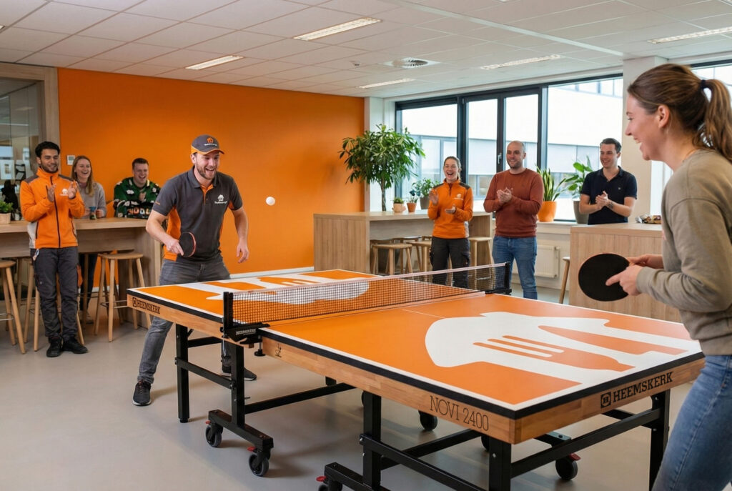 Een potje tafeltennis met collega’s is natuurlijk al ontzettend leuk. Maar wat het nóg leuker maakt is een tafeltennistafel met logo!