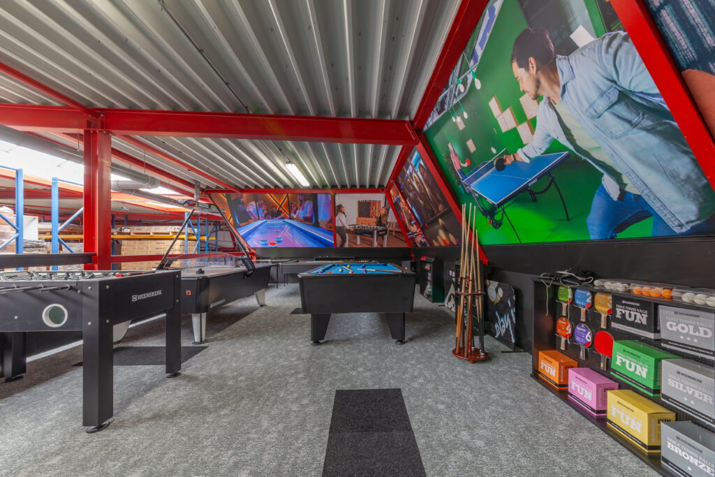 Ja, je kunt onze producten bekijken en testen in onze showroom in Leimuiden (bij Schiphol). We werken bewust op afspraak, zodat we alle tijd hebben om je persoonlijk te adviseren en zodat je echt kunt vergelijken wat voor jou relevant is. In onze showroom staat geen volledig assortiment, maar een zorgvuldig gekozen selectie van onze belangrijkste modellen. Denk aan diverse voetbaltafels, tafeltennistafels, airhockeytafels, pooltafels en een aantal sjoelbakken.