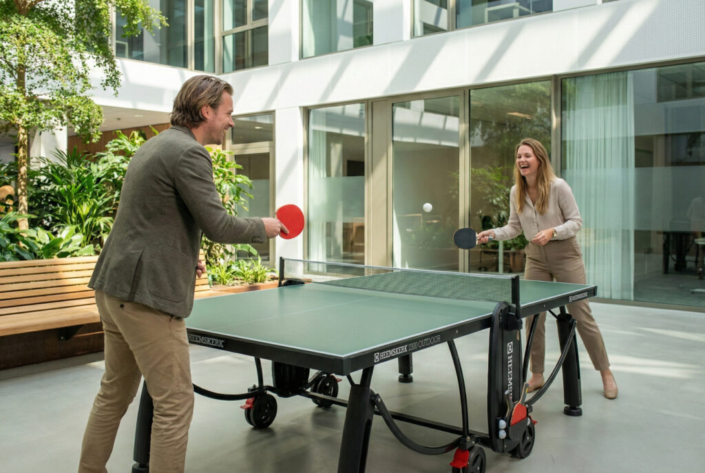 De kantooromgeving moet daarom fungeren als de plek waar men weer oplaadt. Wanneer collega’s wel op kantoor zijn, moet de nadruk liggen op sociale vitaliteit en beweging. Spelplezier is hierbij de snelste manier om de onderlinge banden weer aan te halen die tijdens het thuiswerken zijn verwaterd. Het verhoogt de emotionele vitaliteit en zorgt dat het teamgevoel intact blijft, ongeacht de fysieke afstand.