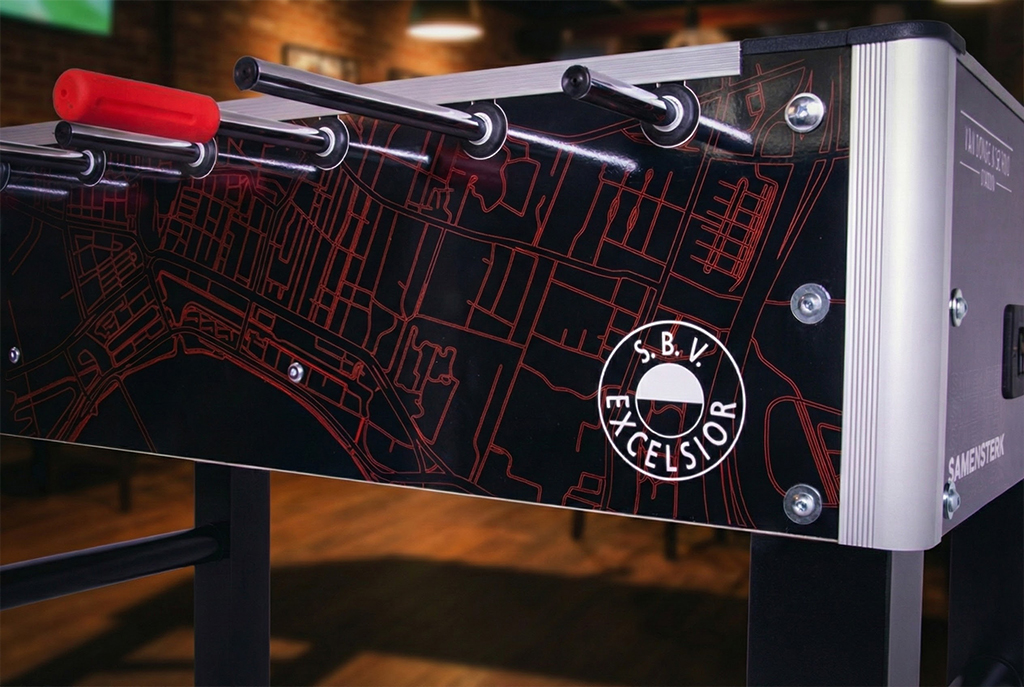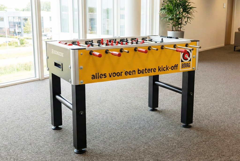 Een voetbaltafel op kantoor is meer dan een instrument voor ontspanning; het is een krachtig middel voor interne verbinding en externe zichtbaarheid. Bij Heemskerk transformeren we een hoogwaardige voetbaltafel tot een uniek branding-object dat naadloos aansluit bij jouw huisstijl.