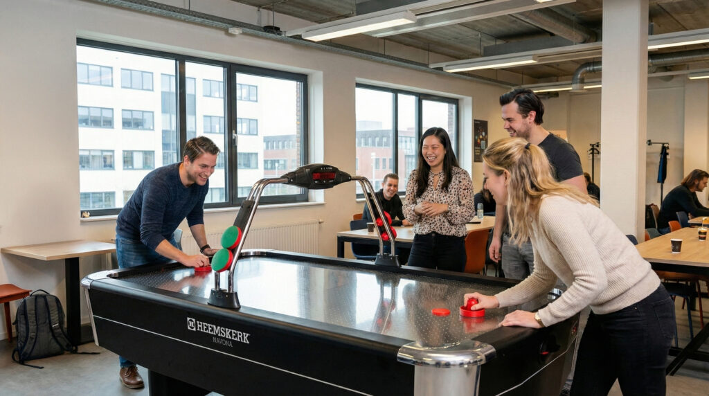 Voor bedrijven is de Heemskerk Coliseum de beste keuze. Deze tafel is stevig, heeft een metalen speelveld en kan tegen een stootje. Hij is ideaal voor kantines of recreatieruimtes waar veel gebruik wordt gemaakt van de tafel.
