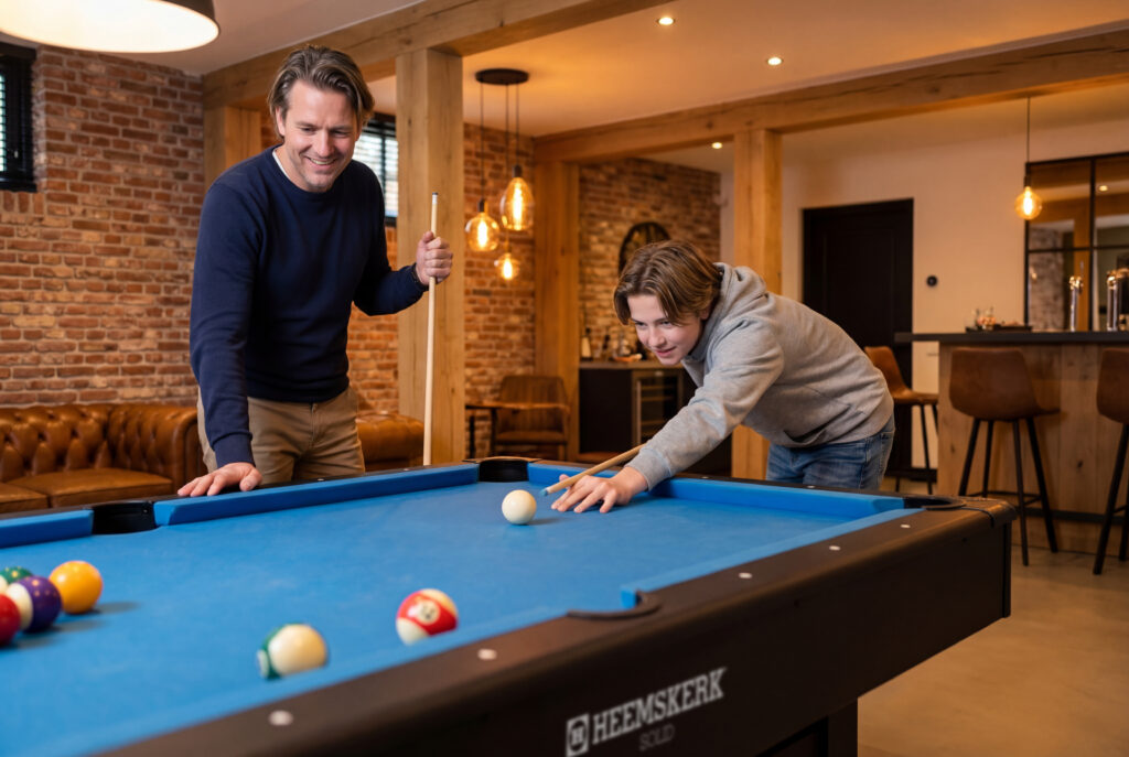 Veel pooltafels staan in een woonkamer, zolderkamer of compacte recreatieruimte. De afstand tussen de tafel en de muur bepaalt vaak of je beter voor een kortere keu kunt kiezen.